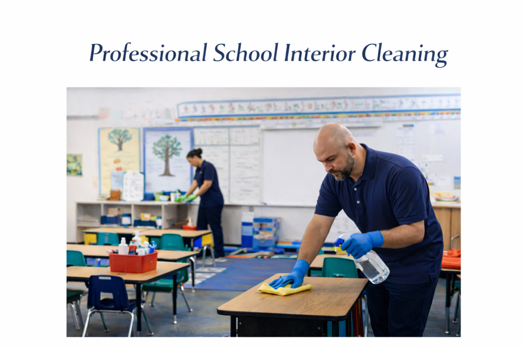 Our trained team provides daily janitorial services, deep classroom cleaning, restroom sanitation, cafeteria cleaning, floor polishing, carpet extraction, and high-touch surface disinfection. We use safe, effective products to reduce germs, bacteria, and viruses — helping schools maintain a healthy academic environment year-round.